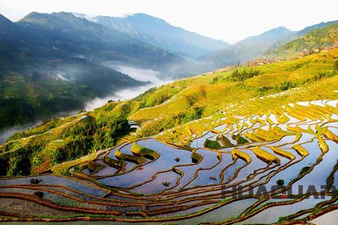 還有那美輪美奐的加榜梯田,有著“農(nóng)耕文化博物館”之譽(yù),堪稱“人間絕境”。加榜梯田位于從江縣西部的月亮山腹地,是中國梯田之一。獨(dú)具苗鄉(xiāng)特色的吊腳樓均勻散落于近萬畝的梯田之上,猶如銀河中閃爍的繁星。加之梯田緊靠加車河,雨水充沛,每天清晨,一層層云霧便從河邊緩緩升起,慢慢的將梯田連同吊腳樓一起籠罩,如此盛景,保證會讓你在陶醉之余生起一種身處幻境的錯覺。在以各種方式評選的中國 美梯田中,無論是10大、 9大,還是5大、4大,加榜梯田總會占據(jù)其中一席。